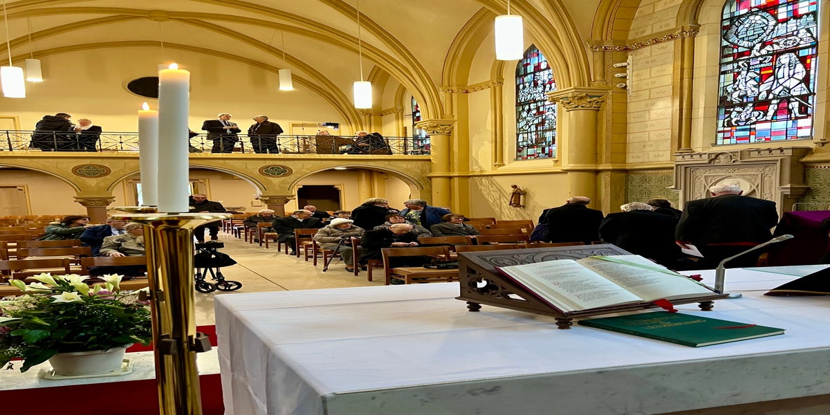 30.1.26 Commémoration Massaker Sonnenburg Eglise Dekanat Diekirch avec Drapeau