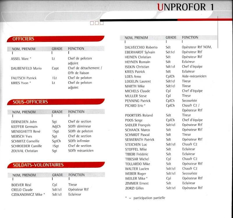 Lëtzebuerg ass mat de Missiounen Unprofor 1-2-3 am Belschen Battaiilloun Belbat vun März 1992-August 1993 derbäi.